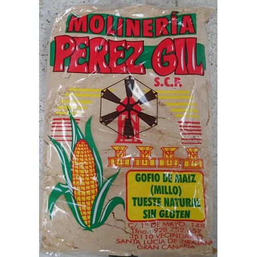 Adquirido del molino situado en la localidad de Vecindario, en el municipio vecino de Santa Lucía de Tirajana. La familia Pérez-Gil, elabora de forma artesanal, tal y como hacía su padre, un producto cuyo secreto quizá esté en la calidad de la materia prima, el millo.